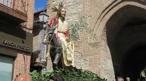 En la mañana del Domingo de Ramos, una nueva celebración procesional en Arévalo, la tradicional “Procesión de los Ramos” o la borriquilla. Desde la iglesia de Santa María la Mayor salió el paso de “La Borriquilla” portado por cofrades de la Santa Vera Cruz. En el marco monumental y mudéjar de la Plaza de la Villa, el párroco D. Alejandro Cabrero procedió a la bendición de  los ramos de laurel, como por aquí es costumbre, para después iniciar la procesión por el casco histórico de la ciudad, desde la Plaza de la Villa subiendo por la Calle de San Ignacio de Loyola hacia la Plaza del Real, pasando por el Arco de la Villa a la Plaza del Arrabal, entrando toda la comitiva a la iglesia parroquial de Santo Domingo de Silos, donde se celebró la Misa de los Ramos con el templo abarrotado de fieles. Durante la celebración se realizó la imposición de medallas a los nuevos cofrades, como es costumbre. Finalizada la eucaristía, la procesión continuó hasta la iglesia de El Salvador donde finalizó. Hay que destacar el tiempo primaveral que acompañó dentro de estos días tan cambiantes amenazando lluvia; la gran participación de público y muchos visitantes. Los cofrades vestían hábito blanco con capelina y cíngulo verde oliva, a cara descubierta.