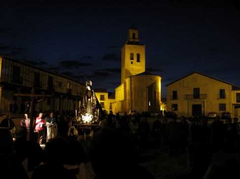 La noche del Viernes de Dolores, la Plaza de Villa de Arévalo acogió la primera celebración procesional de la Semana Santa arevalense. Una noche de temperatura agradable, en contraste con los últimos fríos, acompañó la comitiva. Previamente se habían marcado en el recorrido las siete estaciones dolorosas de la Virgen, procesión realizada con las imágenes de la Virgen Dolorosa que fue portada por las mujeres cofrades y un Cristo Crucificado por los hombres, con hábito blanco y verde oliva, portando faroles. Los cofrades de la Santa Vera Cruz y el numeroso público asistente, fueron desgranando oraciones, meditaciones y cantos entre las estaciones y el recorrido por esa monumental plaza. Al finalizar este acto religioso se cantó el himno de la Virgen de las Angustias, como ya es tradicional.